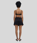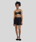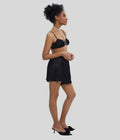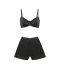 - Топ приталеного крою на тонких бретелях. Шорти вільного силуету з еластичним поясом. Дивіться нашу таблицю з розмірами.