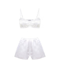 - Топ приталеного крою на тонких бретелях. Шорти вільного силуету з еластичним поясом. Дивіться нашу таблицю з розмірами.