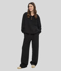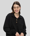- Розслаблений крій з відкладним коміром, застібкою на ґудзики та еластичним поясом. Дивіться нашу таблицю з розмірами.