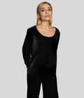 - Розслаблений крій з круглою горловиною та застібкою на ґудзики. Брюки з еластичним поясом. Дивіться нашу таблицю з розмірами.