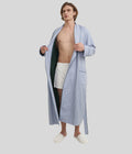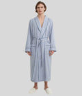 - Цей смугастий халат виготовлений зі 100% бавовни.