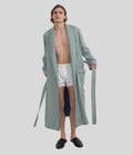 - Цей смугастий халат виготовлений зі 100% бавовни.