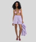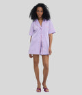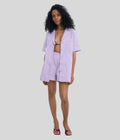 - Розслаблений крій з відкладним коміром, застібкою на ґудзики та еластичним поясом. Одна накладна кишеня. Дивіться нашу таблицю з розмірами.