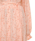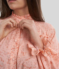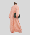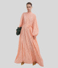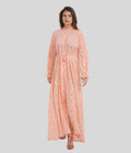 - Горловина з коміром-стійкою з декоровними складками. По низу рукавів резинка. Пояс знімний. Застібка на ґудзики.