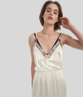 - Ця сатинова сукня виготовлена з 50% віскози та 50% поліестеру.