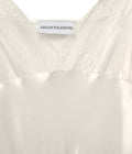 - Підкреслений ліф та пряма спідниця з бічним розрізом. Низ оздоблений мереживом. Дивіться нашу розмірну сітку.