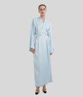 - Цей сатиновий халат виготовлений з 50% віскози та 50% поліестеру.